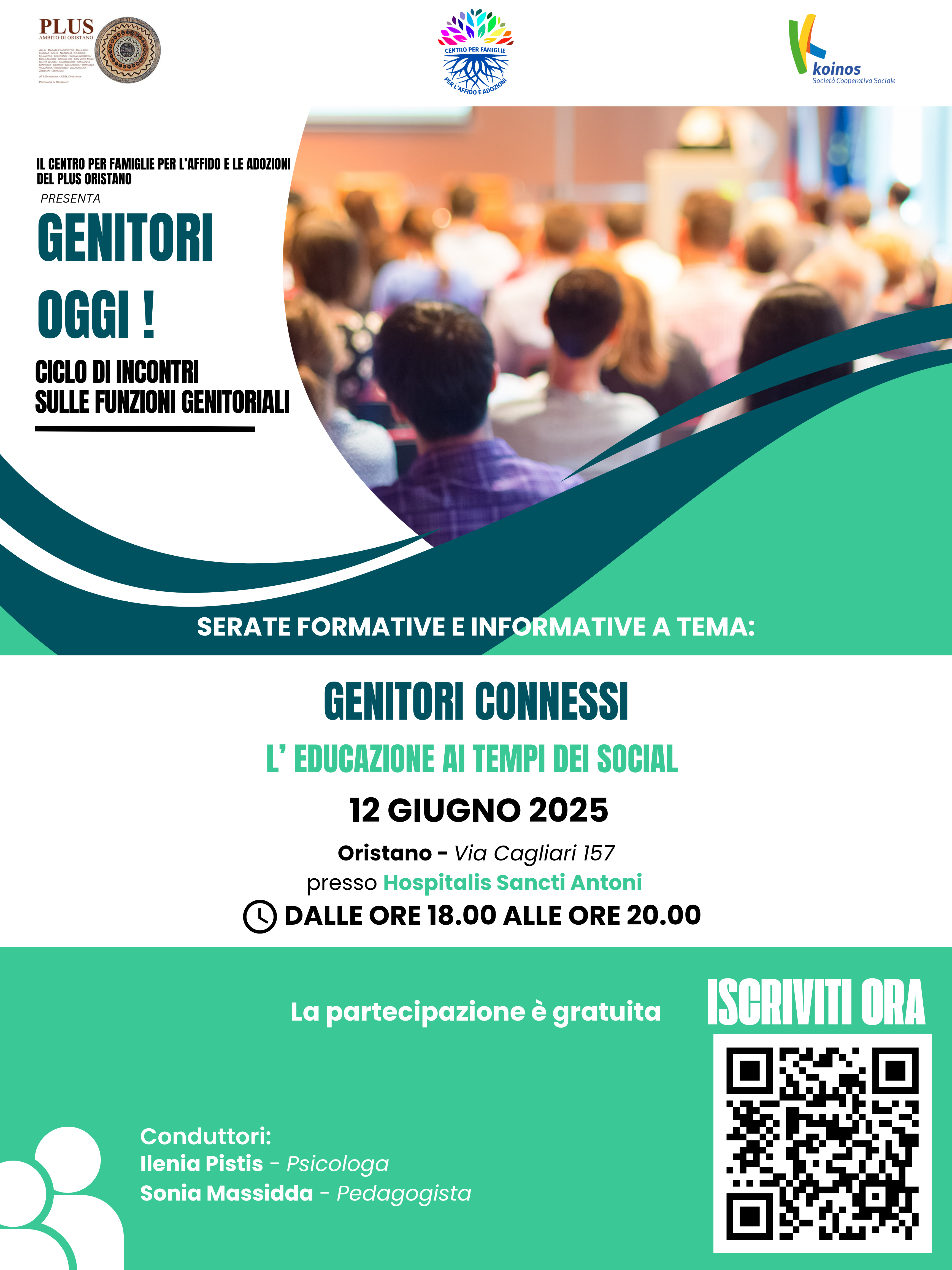Giovedì 12 giugno a Oristano l’ultima serata del ciclo “Genitori Oggi”