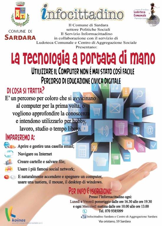 ta di mano”, percorso di educazione digitale, rivolto a coloro che si avvicinano al computer per la prima volta o vogliono approfondire le loro conoscenze.